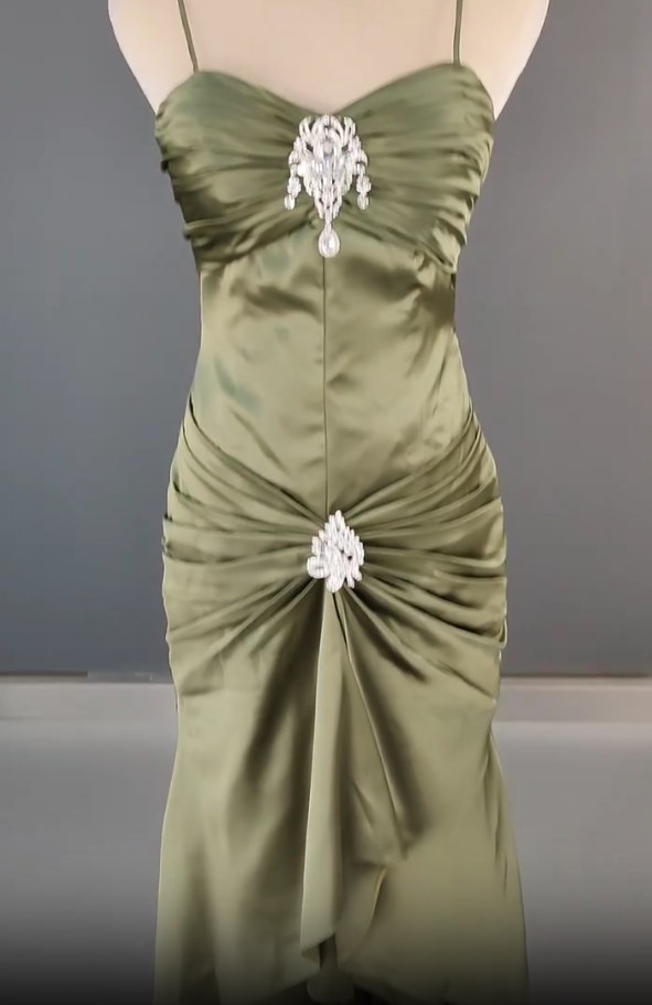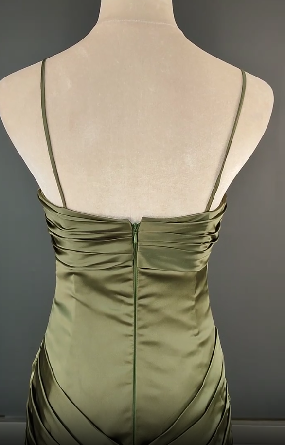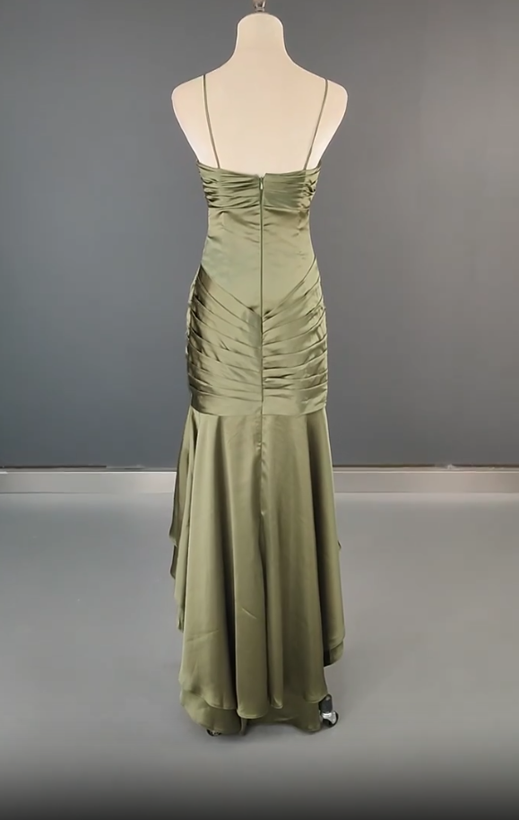 Elegantes Spaghettiträger-Meerjungfrauen-Satin-Dunkelgrünes langes Ballkleid Wunderschönes Abendkleid ED01896