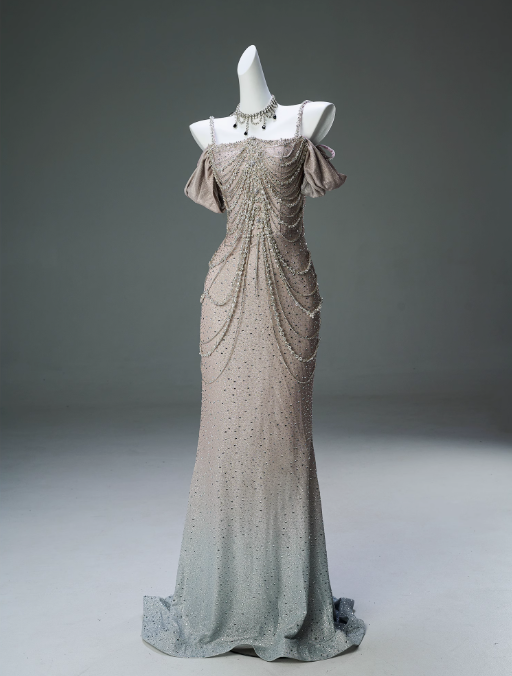 Spaghettiträger Meerjungfrau Perlenbesatz Satin Langes Ballkleid Strass Formales Abendkleid ED01550