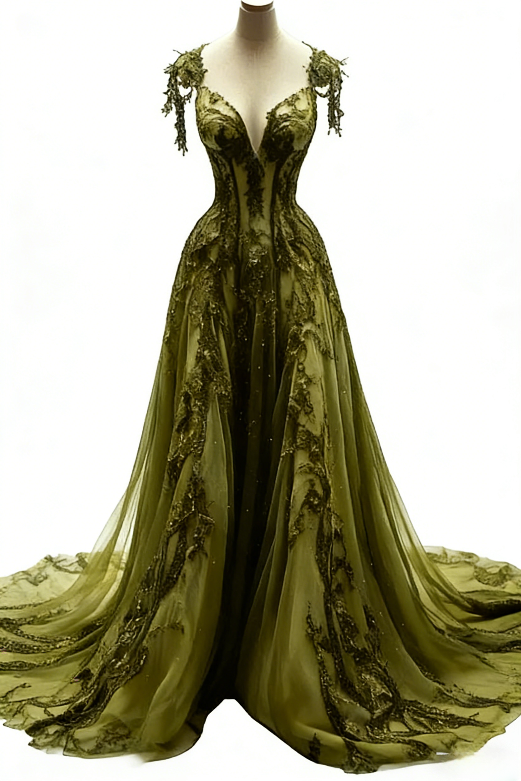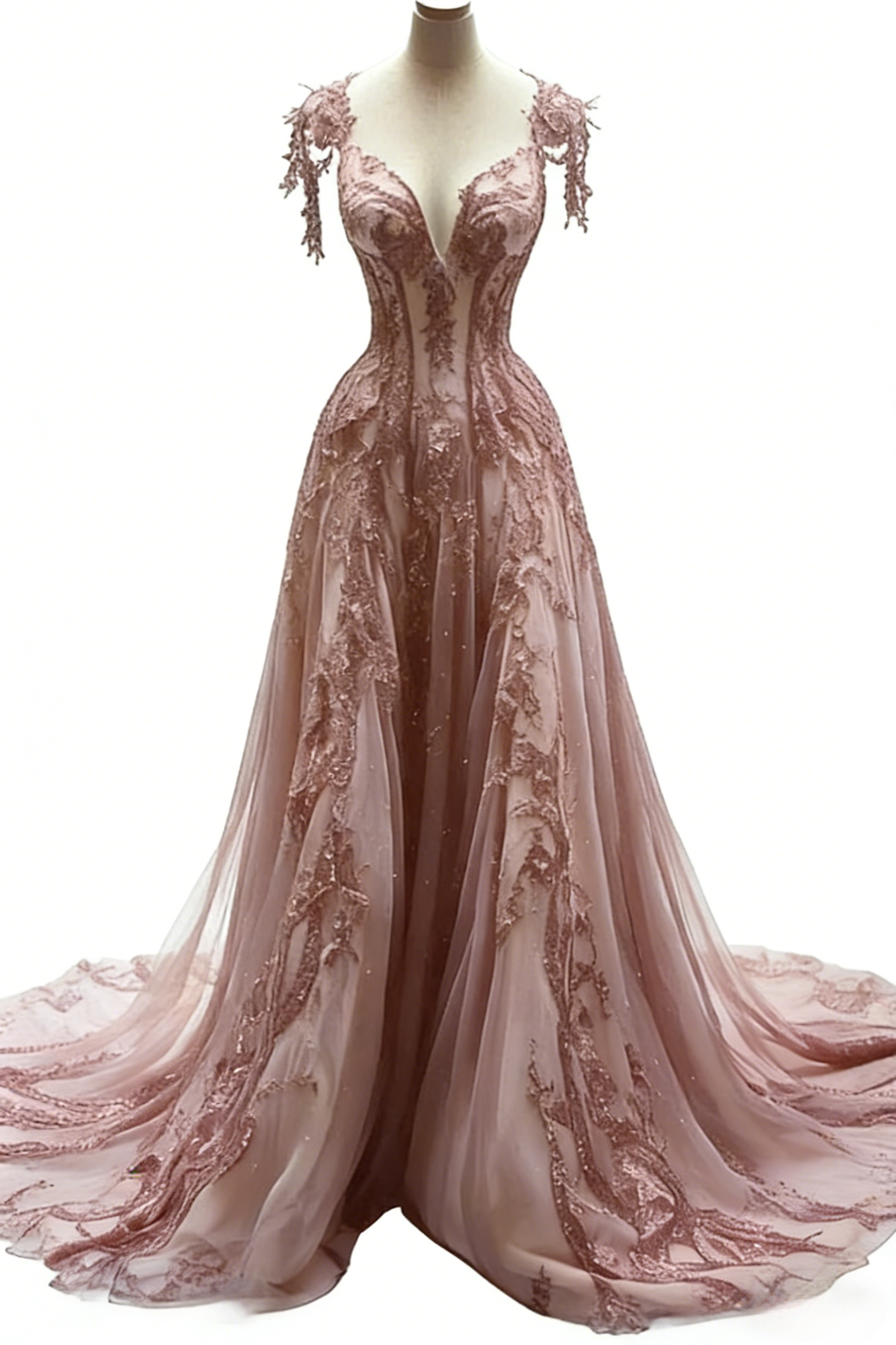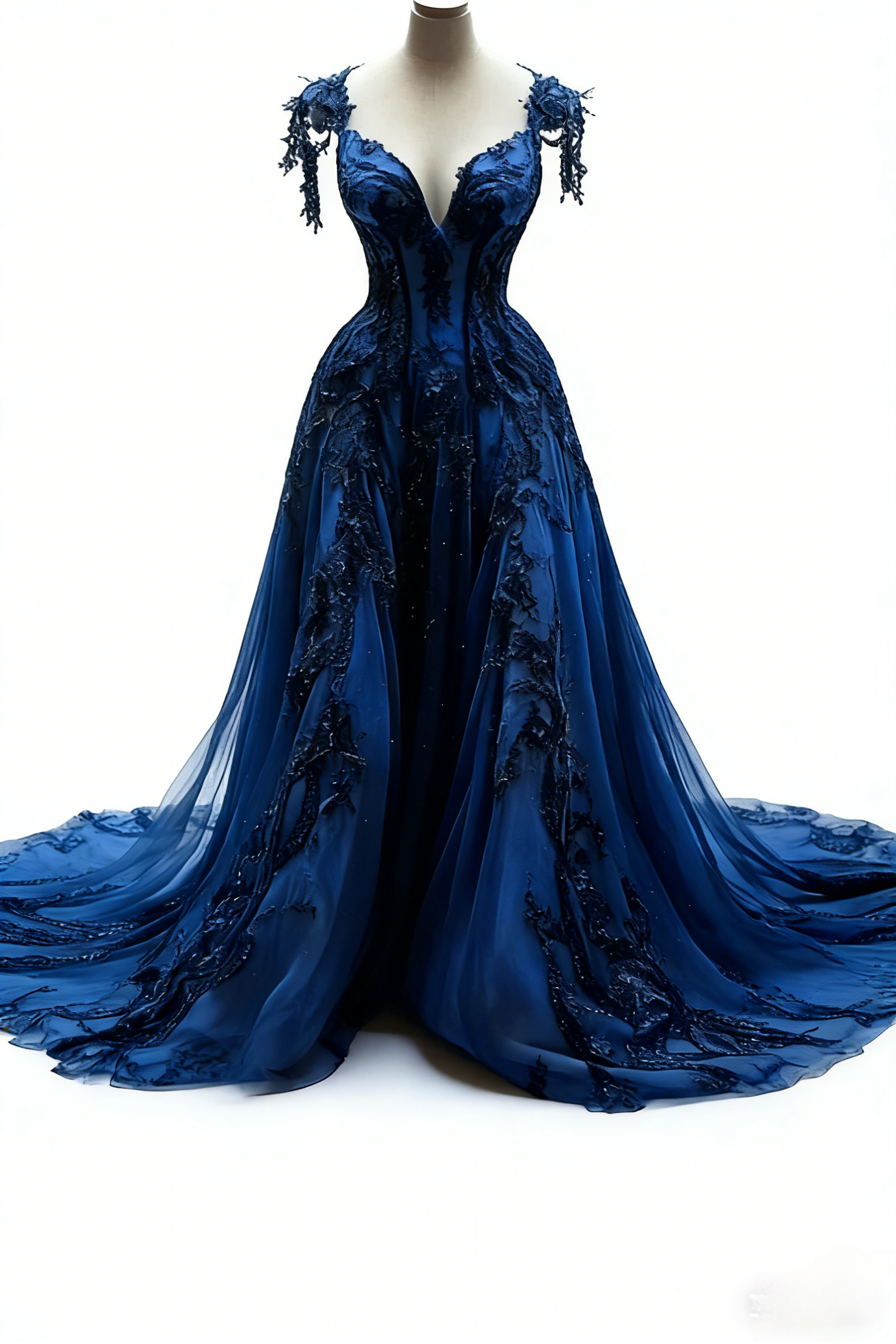 Black Appliques A-line V-neck Lace Tulle Sequin Long Prom Dress, Dark Gray Formal Evening Gowns ED01235