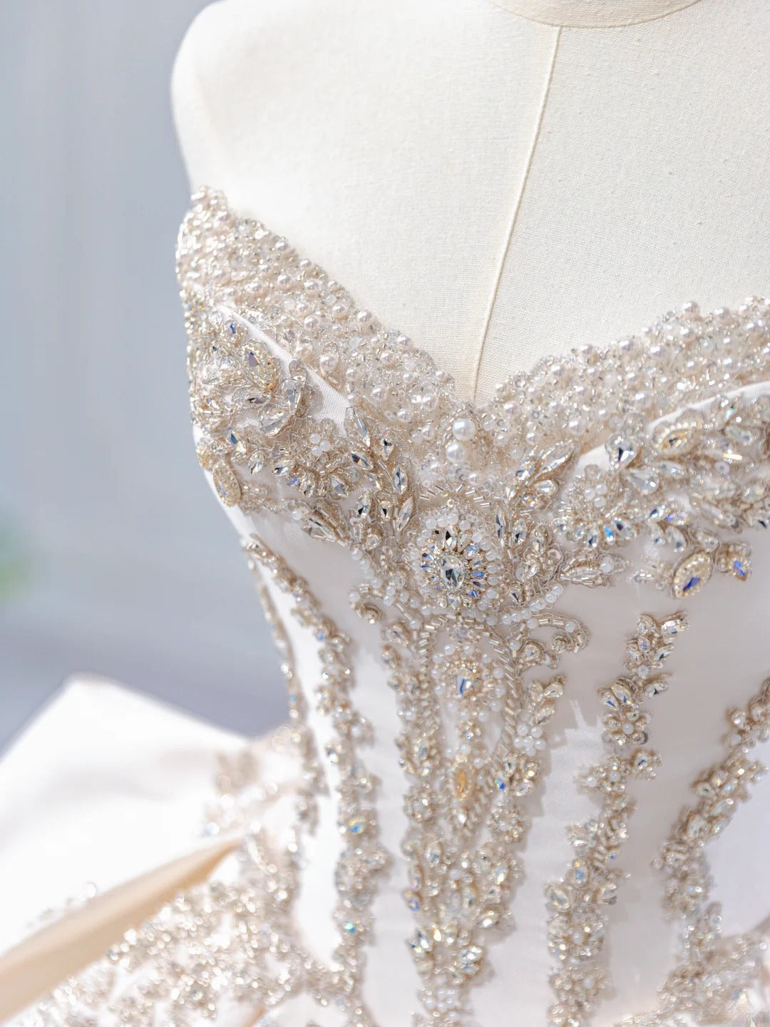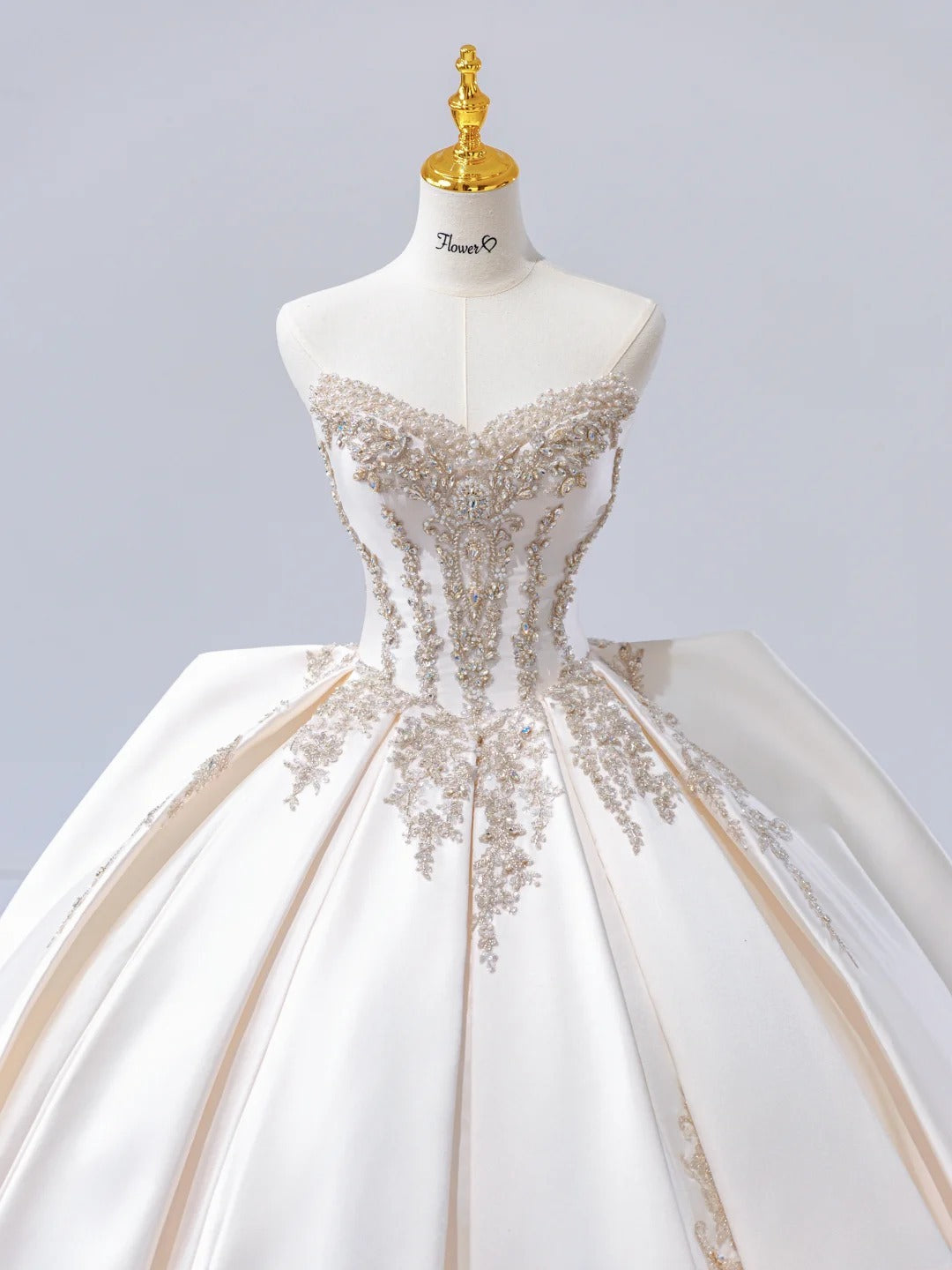 Chic A-Line Long Wedding Dresses Sweetheart Satin White Bridal Dresses Sleeveless Bridal Gowns ED06215