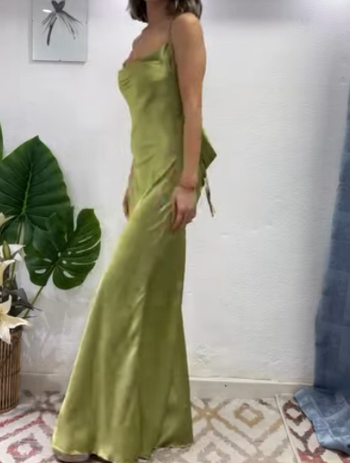 Glam Olive Green Spaghetti Straps Mermaid Satin Long Prom Dresses Formal Evening Gowns With Backless ED02682