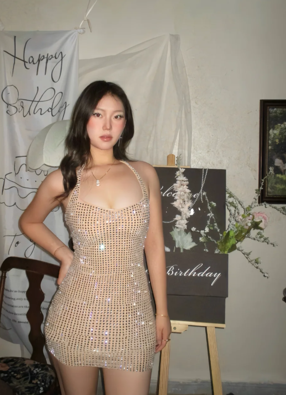 Sexy Sheath Short Prom Dresses Tulle Rhinstones Sleeveless Formal Dresses Halter Champagne Birthday Dresses ED05508
