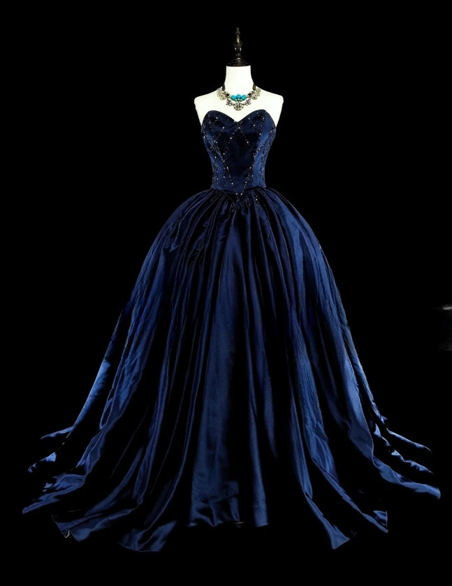 Elegant Sheath Navy Blue Long Prom Dress Beaded Satin Sweetheart Evening Dress Sleeveless Formal Dress ED06440