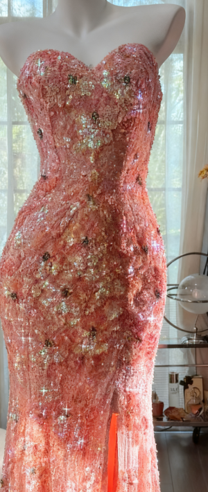 Gorgeous Mermaid Coral Formal Dresses Tulle Sequin Sweetheart Neck Long Prom Dresses Coral Evening Dresses ED04587