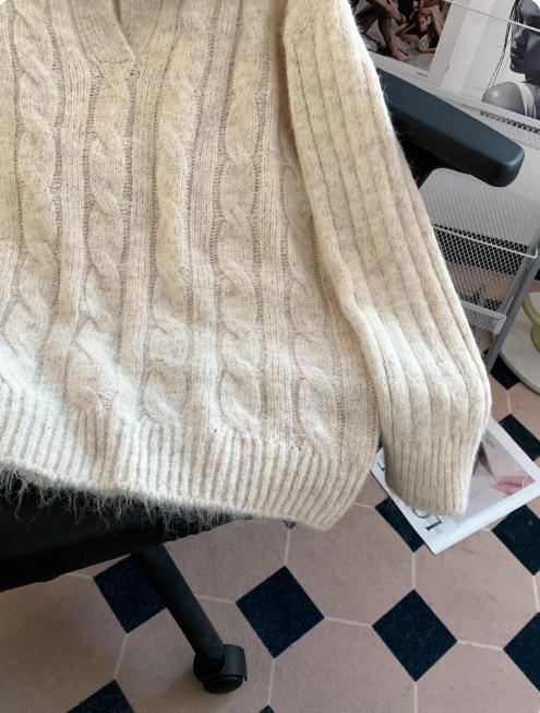 Retro cable knit pullover sweater, Korean style women's cardigan EP01447