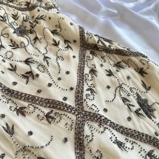 Vintage Beaded Chiffon Sheath Prom Dresses Backless Evening Dresses ED02267