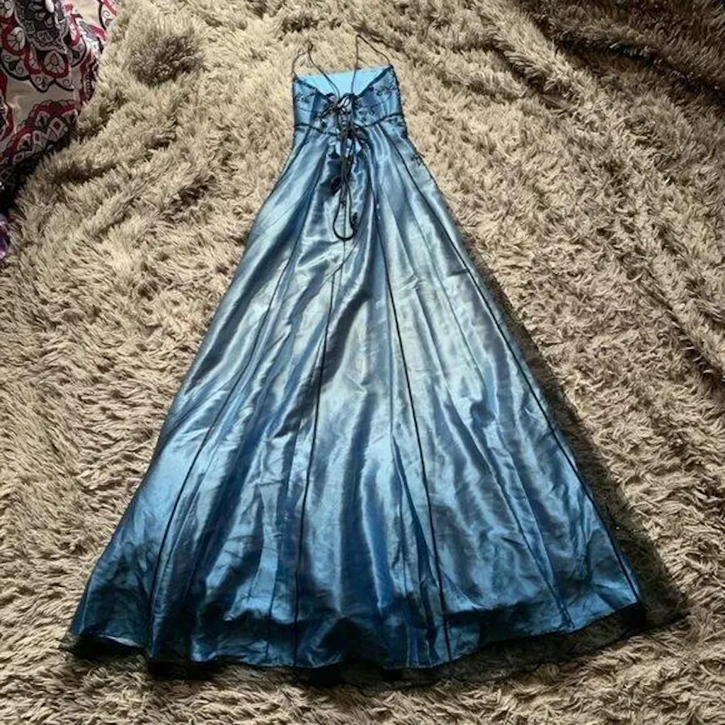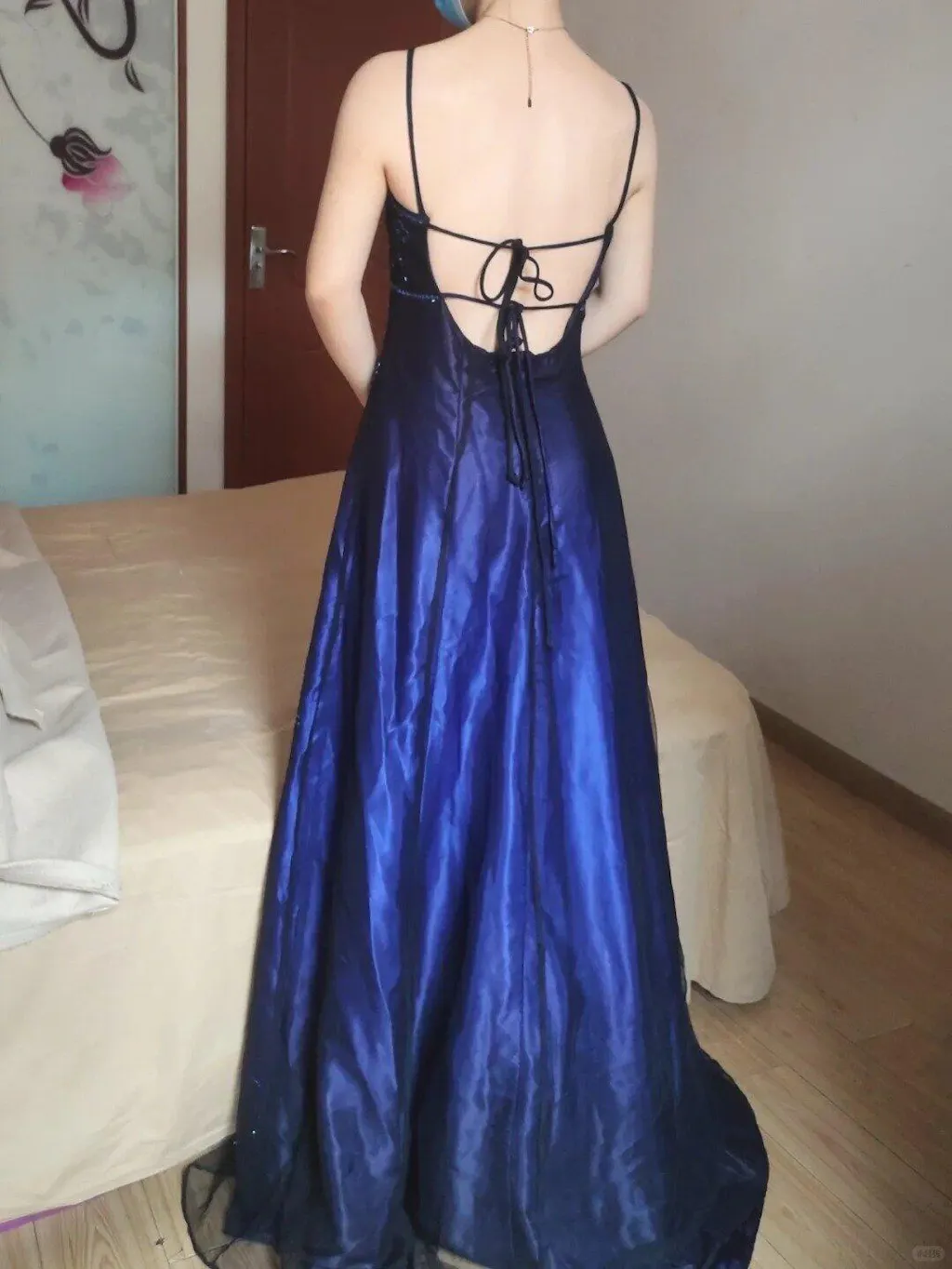 Vintage Blue Gradient Empire Prom Dresses Backless Romantic Beaded Evening Dresses Guest Dresses ED01406