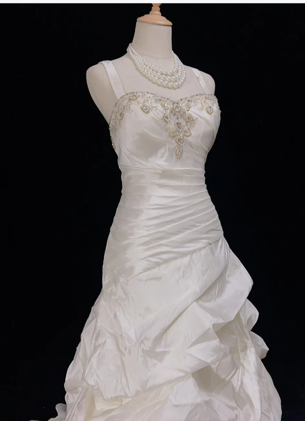Vintage Sheath Long Wedding Dresses Spaghetti Straps Satin White Bridal Gowns Sleeveless Bridal Dresses ED05433