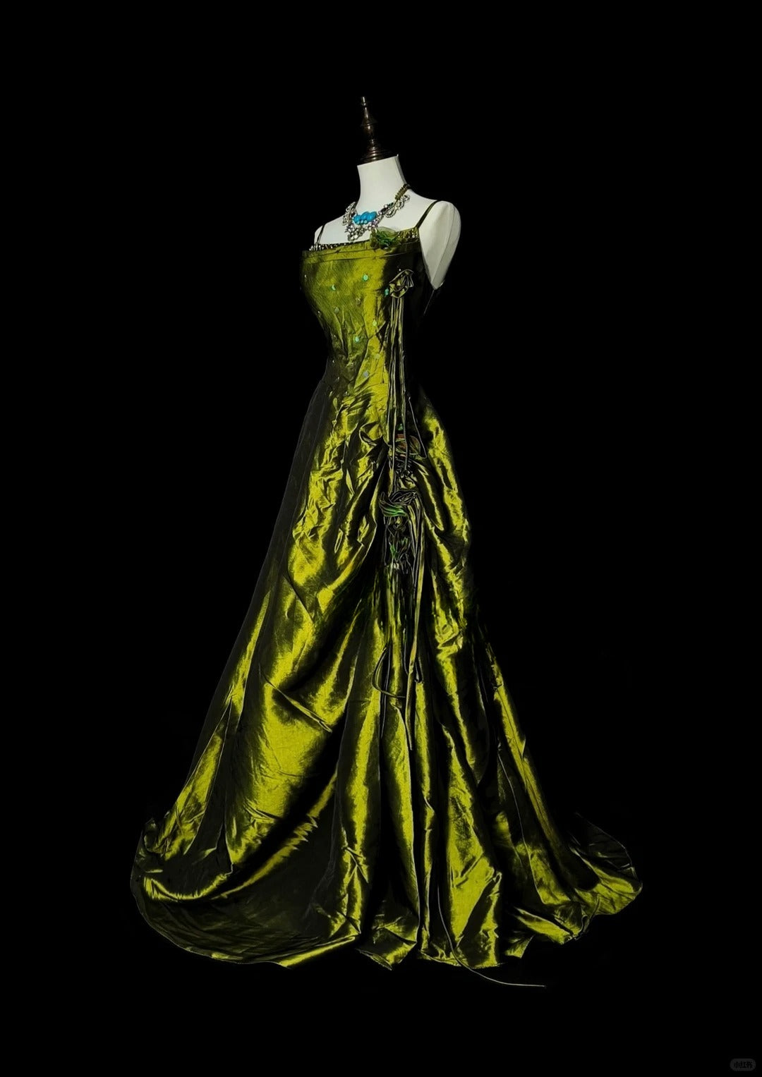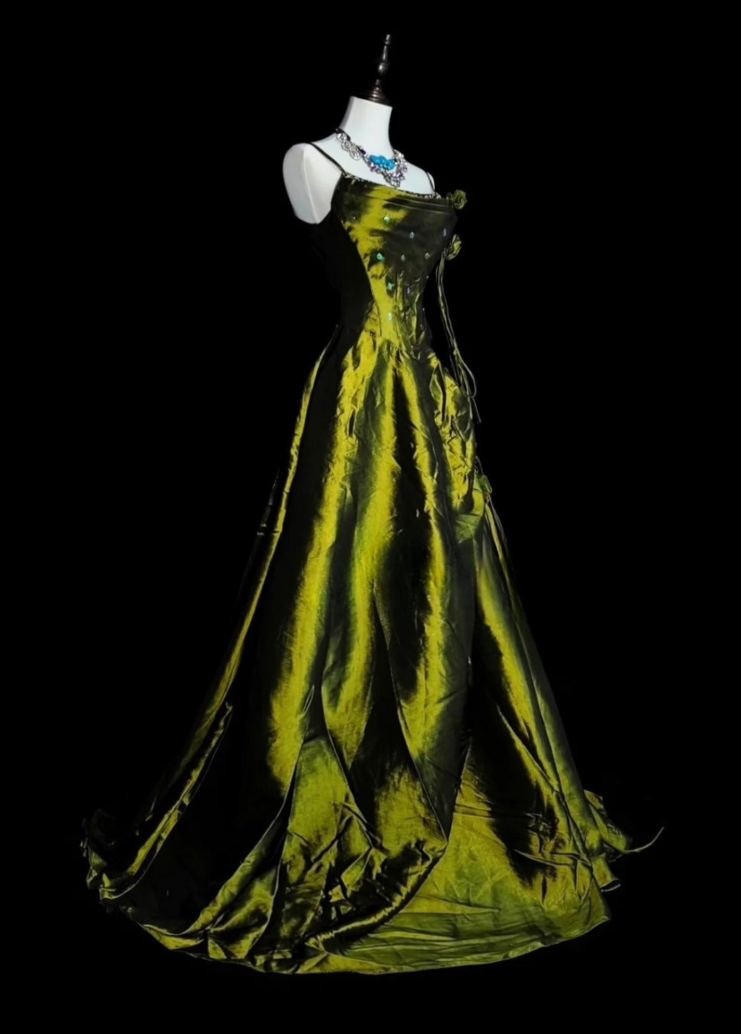 Chic Green Long Prom Dress Satin Spaghetti Straps A-Line Evening Dress Sleeveless Birthday Dress ED06634