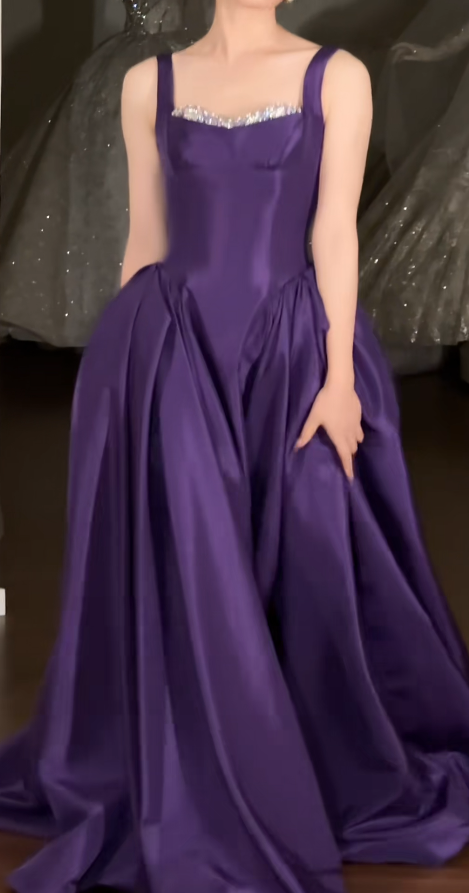 Glam Strap Ball Gown Purple Long Prom Dresses Satin Purple Long Birthday Dresses ED04933