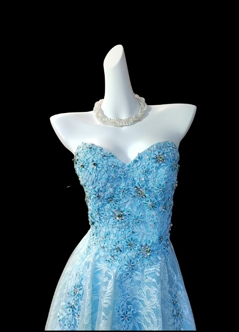 Chic Blue Hi-lo Prom Dresses Appliques Tulle Sweetheart Evening Dresses ED06155