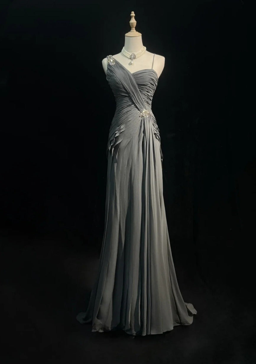 Chic Gray Prom Dress Chiffon Spaghetti Straps Evening Dress Sheath Formal Dress ED06836