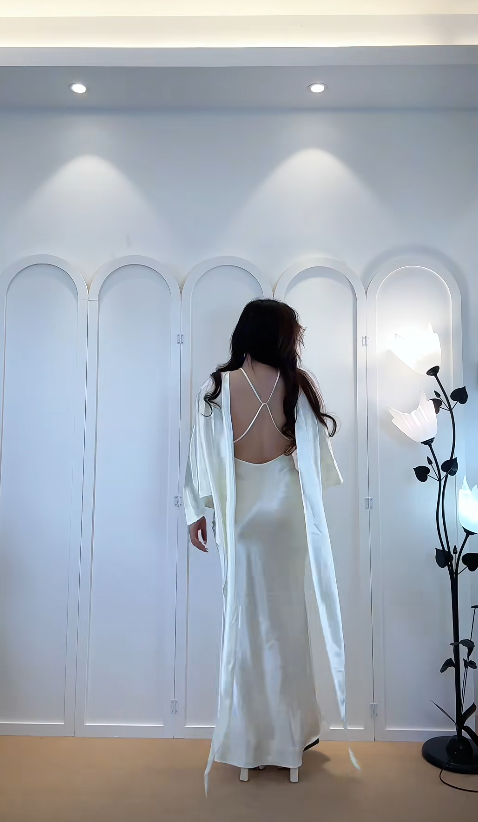 Simple Spaghetti Straps Sheath Long Prom Dresses Satin White Wedding Guest Dresses with Cape ED05659