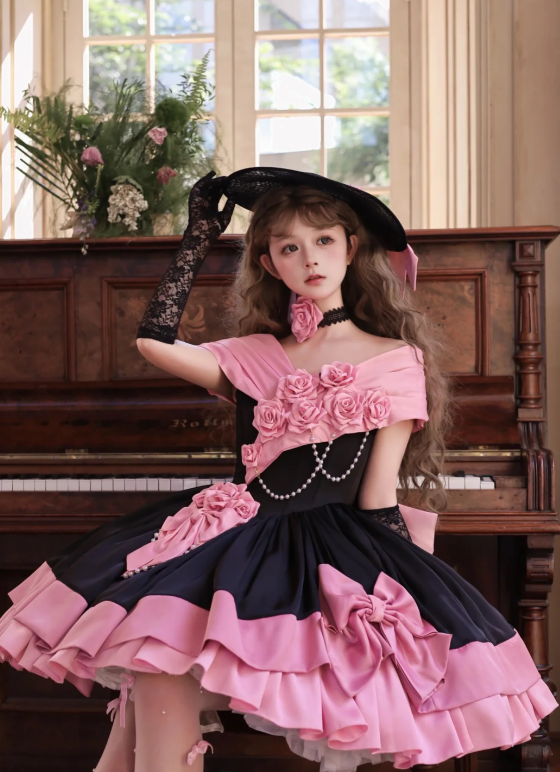 Cute Ball Gown Satin Off-the-shoulder Birthday Dresses Pink Lolita Dresses ED04325
