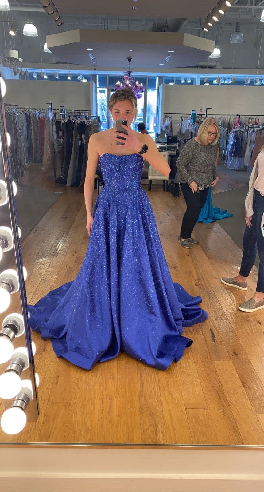 Elegant Strapless A-line Blue Long Prom Dresses Shimmering Satin Blue Long Birthday Dresses ED04915