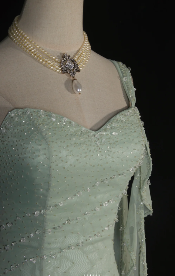 Chic Mermaid Green Long Prom Dresses Satin Spaghetti Straps Evening Dresses Sleeveless Birthday Dresses ED05921