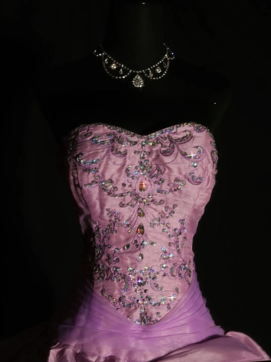Fairy Ball Gown Strapless Long Prom Dresses Satin Beaded Quinceanera Dresses Sleeveless Sweet 16 Dress ED05967