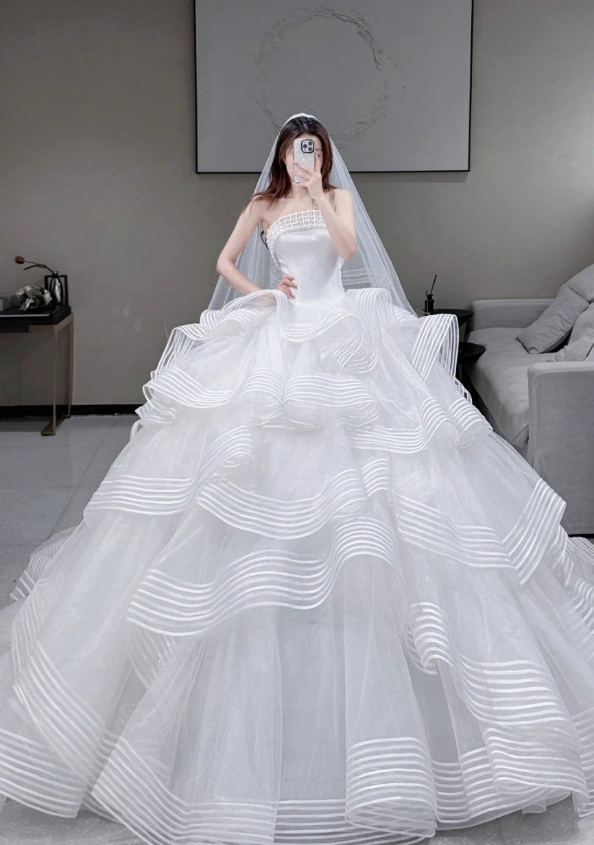 Timeless White Wedding Dress Tulle Strapless Bridal Gowns Sleeveless A-Line Bridal Dress ED06846