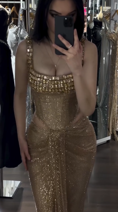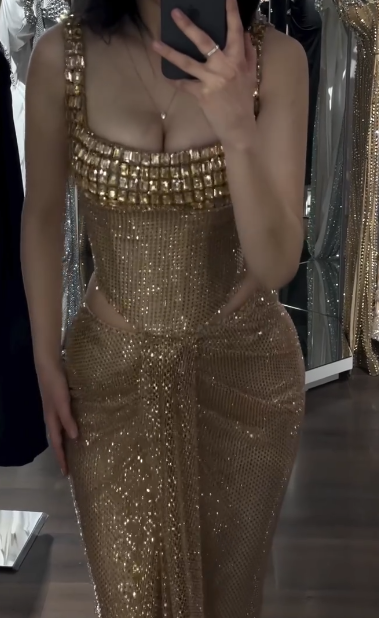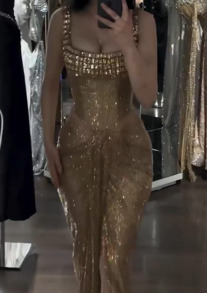 Elegant Gold Sheath Corset Long Prom Dresses Square Neck Sequin Mesh Evening Gowns ED03893