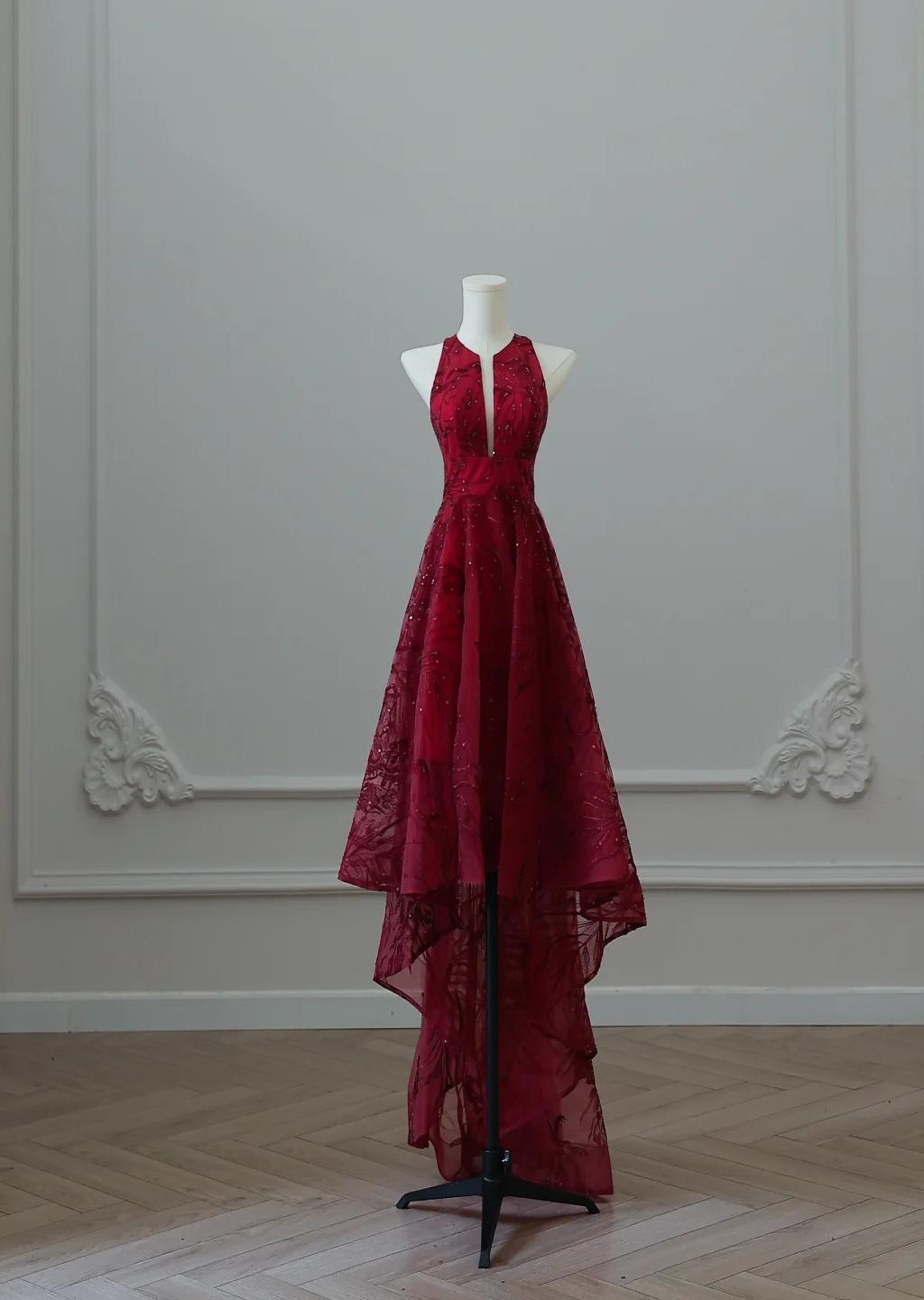 Elegant Red Round Neck A-Line Tulle Hi-Lo Prom Dresses Formal Evening Gowns ED02503