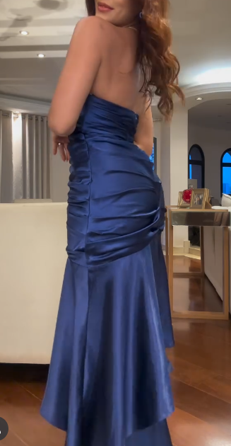 Glamour Navy Blue Sweetheart Neck Mermaid Prom Dresses Satin Long Formal Dress Birthday Outfit ED03576