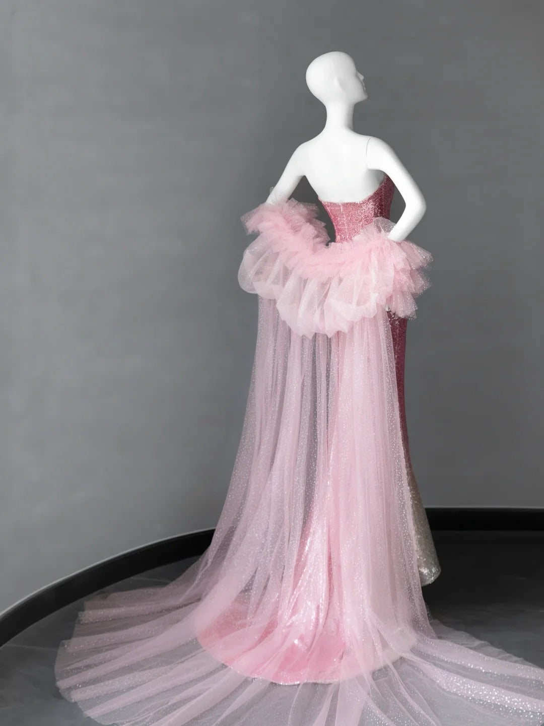 Gorgeous Pink Strapless Mermaid Sequin Long Prom Dresses Formal Evening Gowns ED02518