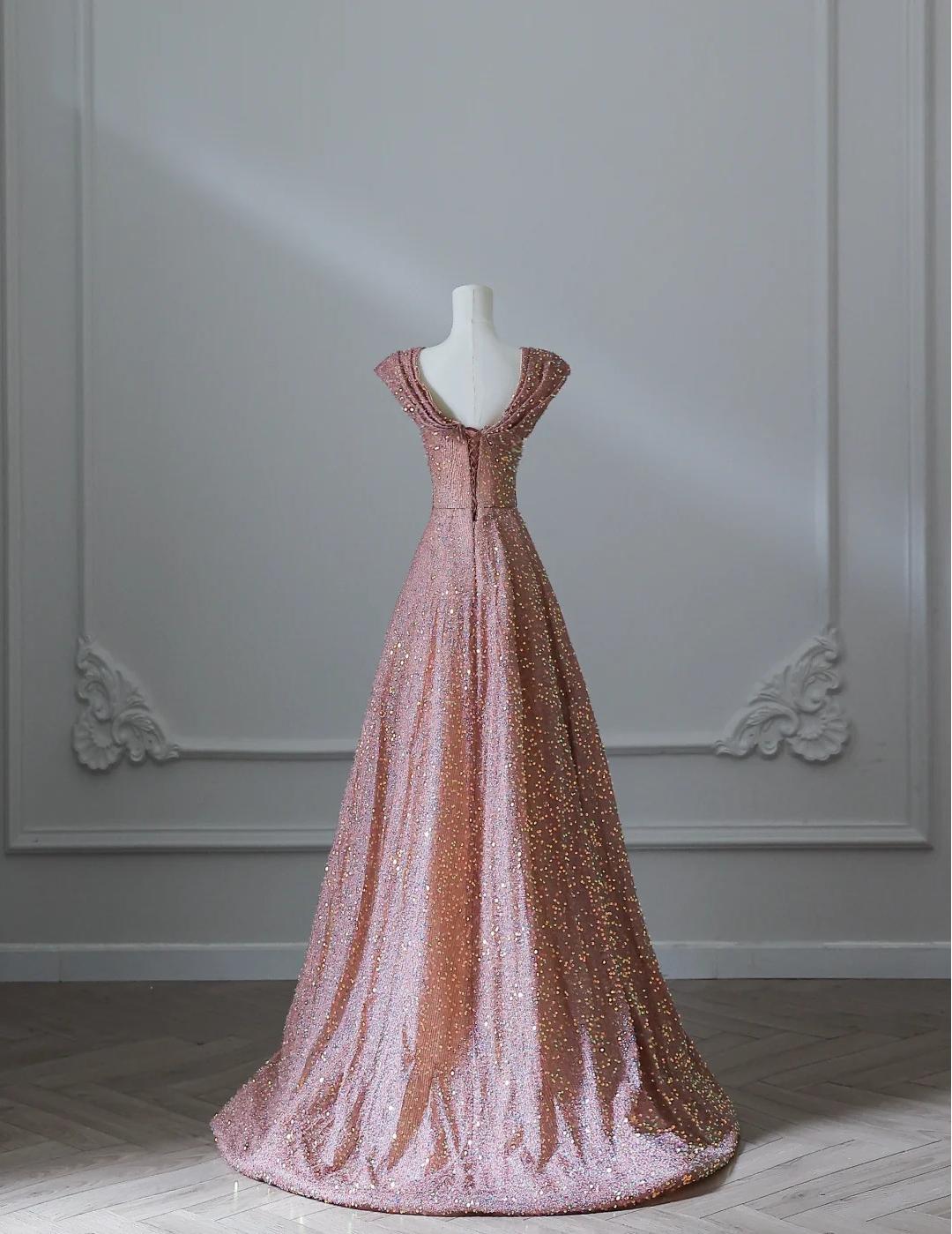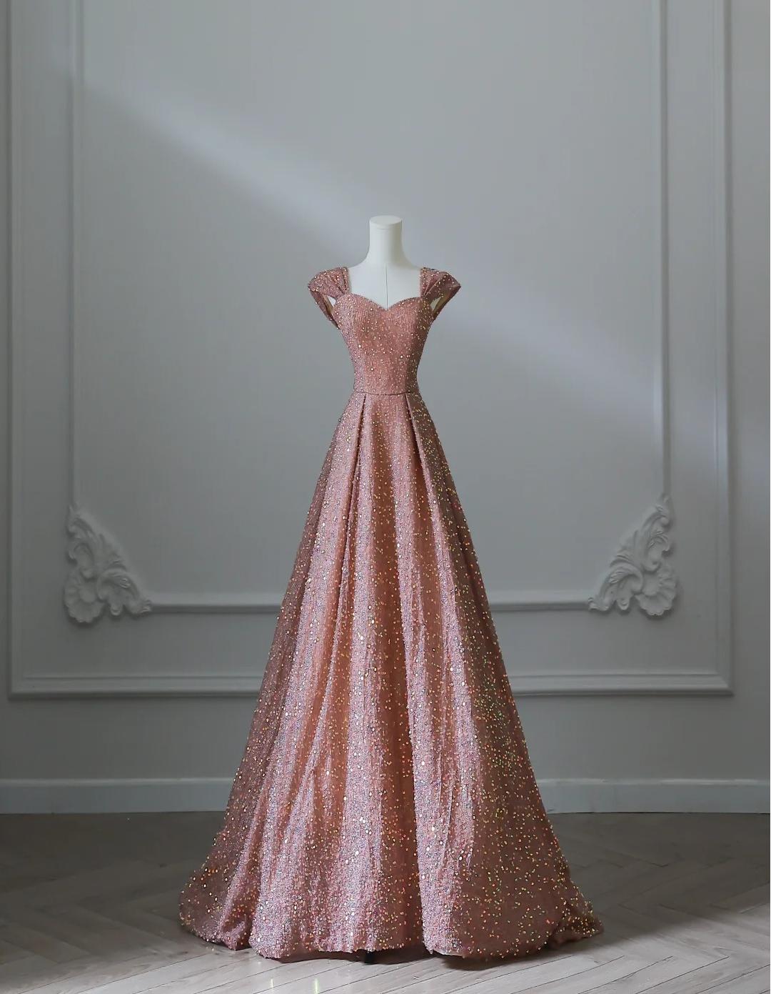 Sweet Pink Sweetheart Neck A-Line Sequin Long Prom Dresses Formal Evening Gowns ED02548