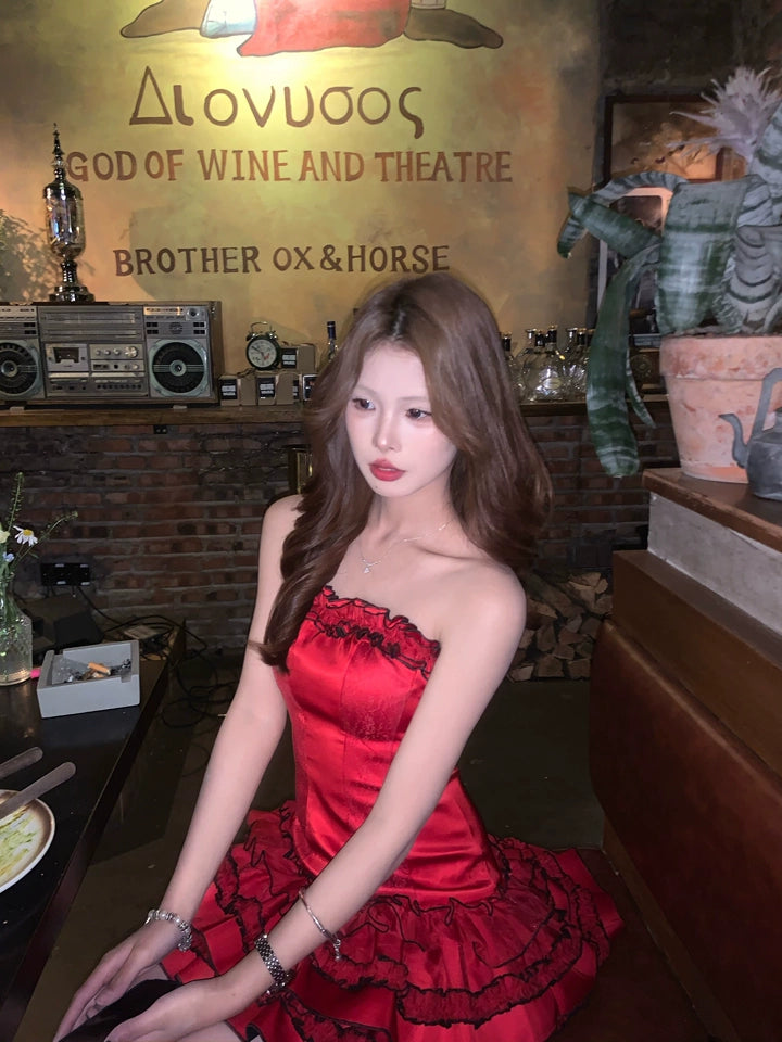 Superbe robe de soirée longue en satin fuchsia, style sirène, sans bretelles, ED02613