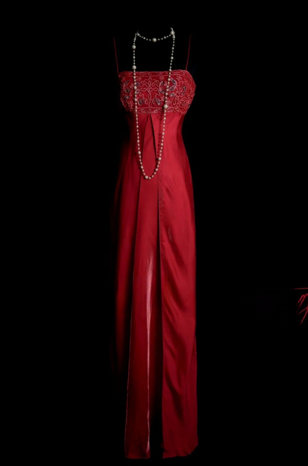 Chic Red Long Prom Dresses Sapghetti Straps Sheath Evening Dress Beaded Satin Sleeveless Wedding Guest Outfit ED06532
