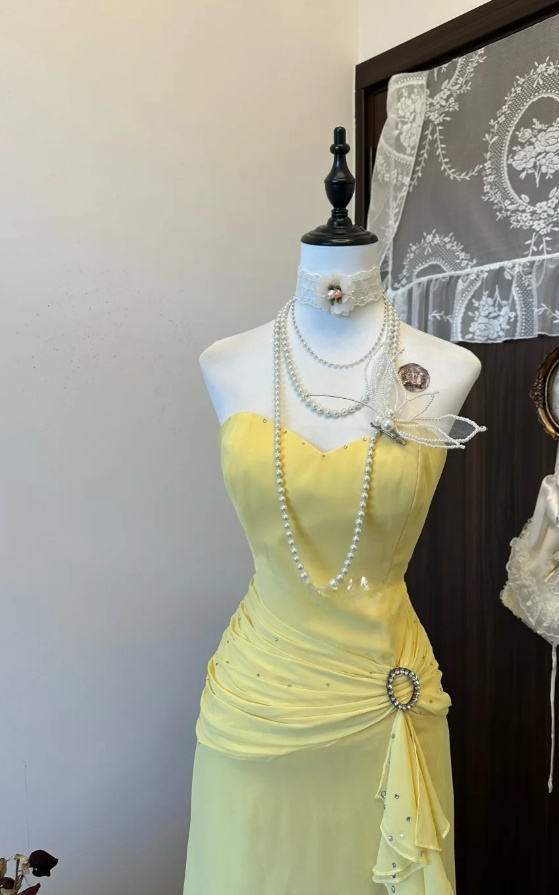 Cute Sheath Yellow Long Prom Dresses Chiffon Strapless Evening Dresses ED05989