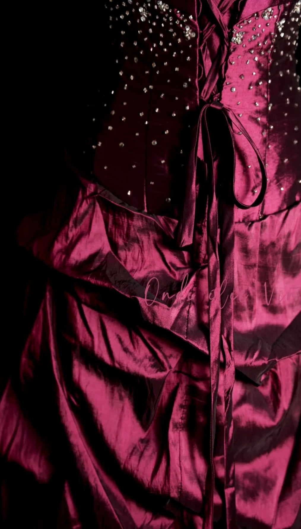 Elegant Burgundy Long Prom Dresses Beaded Satin A-Line Evening Dress Strapless Sweet 16 Dress ED06560