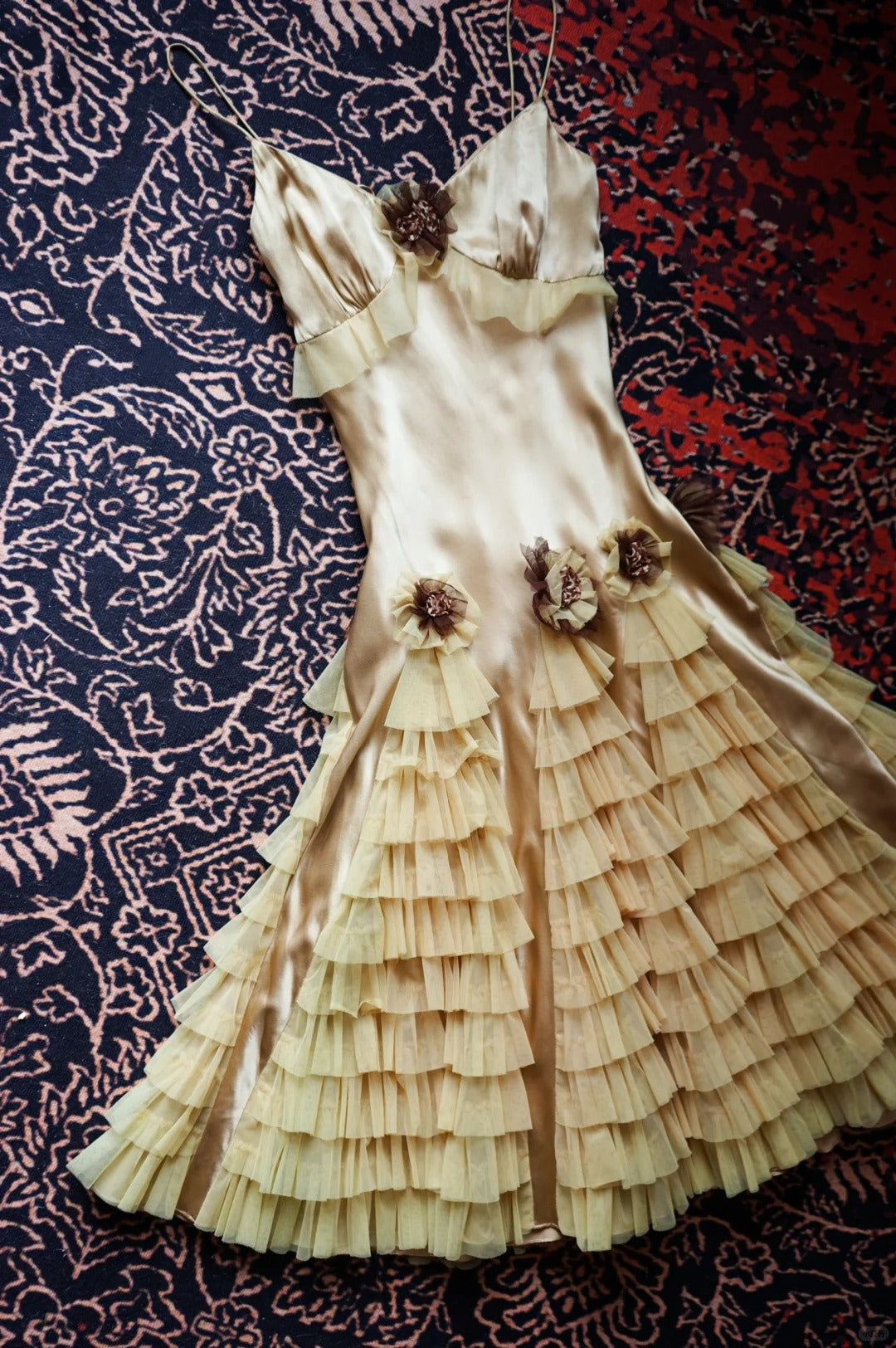 Elegant Light Champagne Sheath Birthday Dress Vintage Satin Tiered Tulle Short Formal Dress with Appliques ED03712