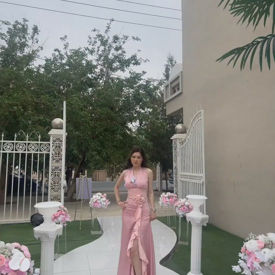 Elegant Sheath Pink Bridesmaid Dresses Satin Sleeveless Evening Dresses ED05483