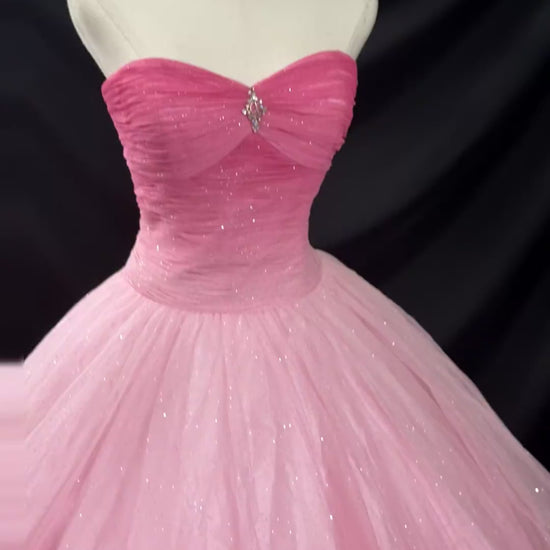 Fairy A-Line Pink Long Prom Dresses Sweetheart Pink Formal Dresses Tulle Sleeveless Evening Dresses ED05477