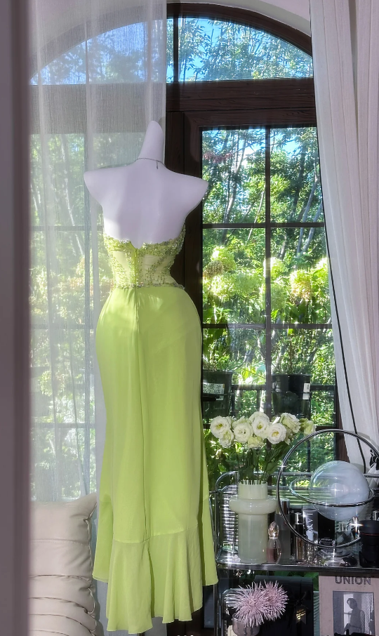 Fairy Green Short Prom Dresses Beaded Chiffon Sweetheart Sheath Evening Dresses ED06191
