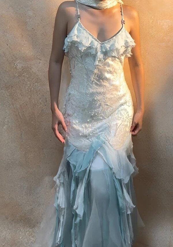 - Suspenders + floor-length Dress: The thin shoulder straps outline the bones, and the skirt is floor-length but surprisingly light, every step is like walking on clouds.