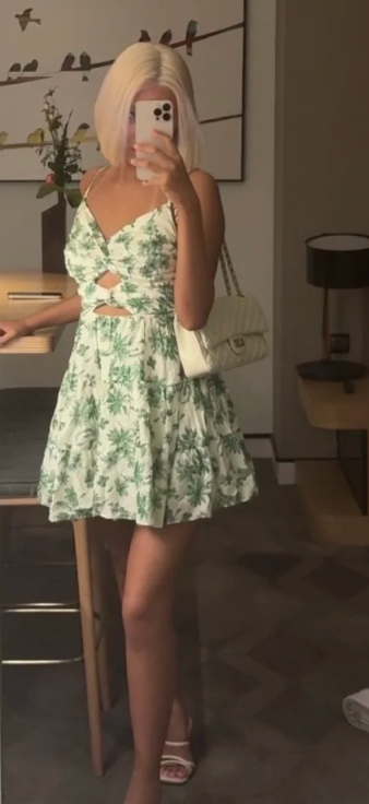 Sexy Straps A-Line Floral Satin Green Homecoming Dresses Birthday Dresses ED04039