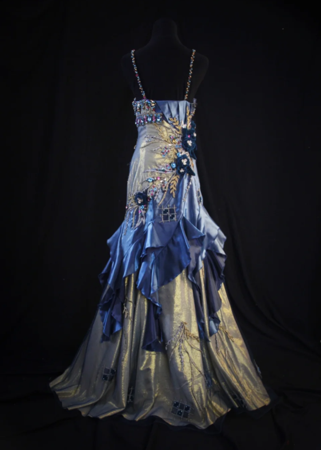 Vintage Blue Sheath Long Prom Dress Satin Beaded Spaghetti Straps Evening Dresses Sleeveless Formal Dresses ED05940