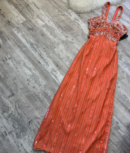 Vintage Sheath Chiffon Orange Formal Evening Dress,Spaghetti Straps Beaded Sequins Long Backless Prom Dresses ED04062