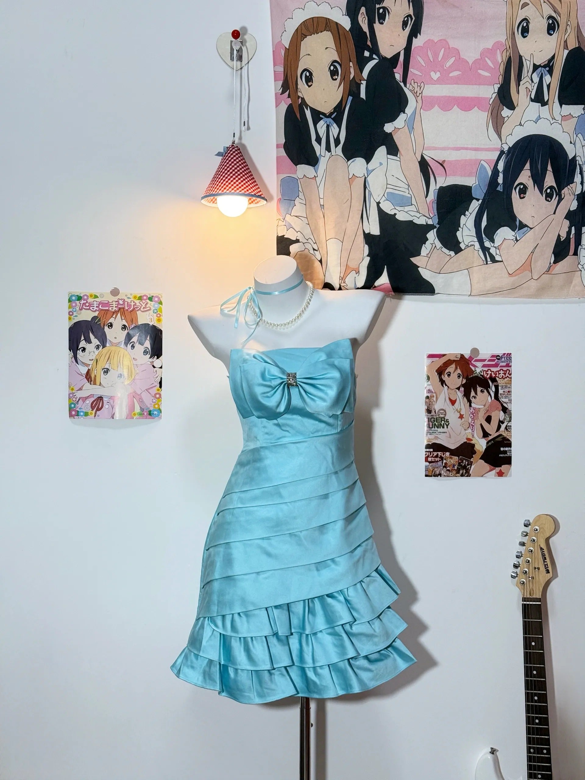 Vintage Sheath Strapless Formal Dress Blue Satin Short Birthday Dress Homecoming Dresses ED04096