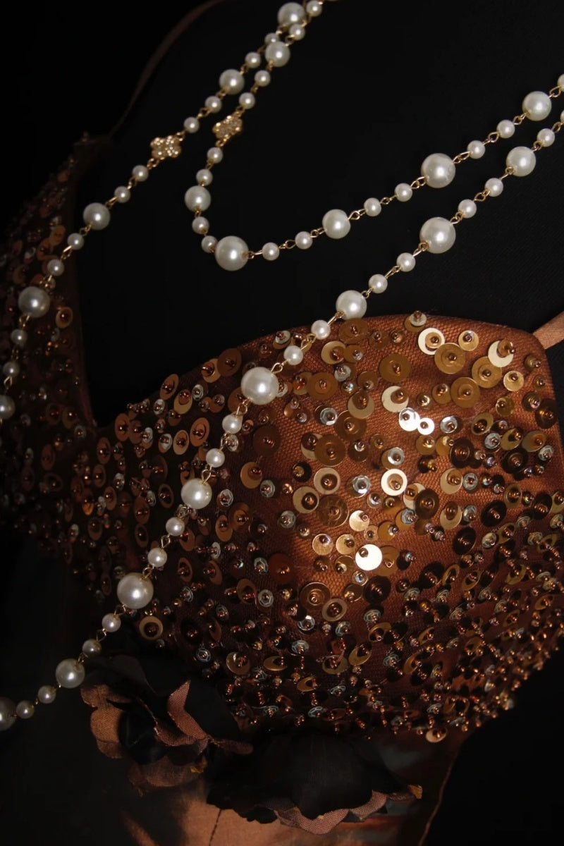 Vintage Spaghetti Strap A-Line Short Prom Dresses Satin Brown Formal Dresses Sequin Homecoming Dresses EP04772